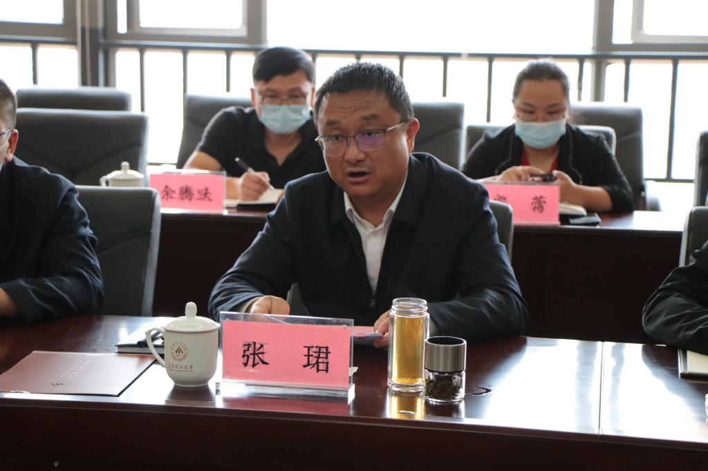 王华代表学校对张珺一行到访表示欢迎,对近年来学校建设发展相关情况进行了介绍,希望校地双方保持良好的交流和合作,在科技创新、产业发展、人才培养、学生就业等方面开展全方位深层次的合作实践。
