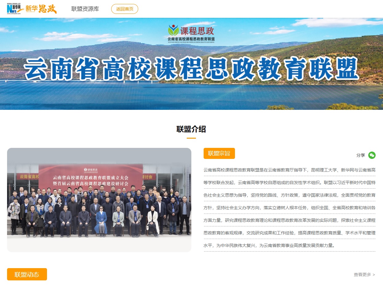 日前,由昆明理工大学牵头成立的云南省高校课程思政教育联盟入围新华思政全国首批6个联盟专区代表,正式上线新华思政平台。