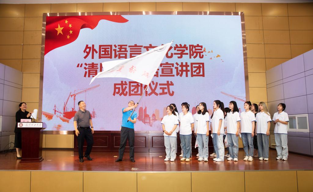 陶光荣为“清风”双语宣讲团授旗并致辞。陶光荣指出,“清风”双语宣讲团的成立,是外国语言文化学院积极创新廉洁教育形式,落实“清廉学校”建设、加强“不想腐”建设的重要举措,对于落实立德树人任务有重要意义。他强调,要坚持把廉洁教育作为思想政治引领的重要内容,推动以廉化人向纵深发展。