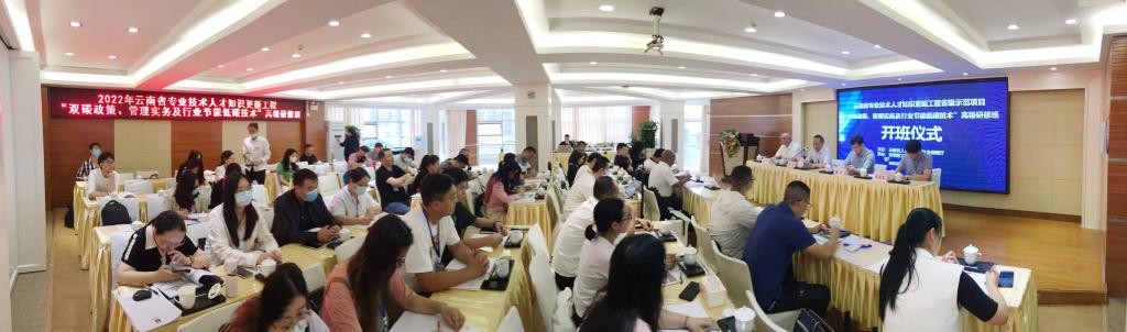 7月11日,由云南省人力资源和社会保障厅主办并资助立项,昆明理工大学承办的2022年云南省专业技术人才知识更新工程省级示范项目“双碳政策、管理实务及行业节能低碳技术”高级研修班在云南方舟大酒店开班。昆明理工大学党委常委、副校长杨斌,副校长潘波出席开班仪式。云南省人力资源和社会保障厅专业技术人员管理处,学校人事处、继续教育学院、环境科学与工程学院等相关部门、学院负责人参加开班仪式。来自省内外环保等专业相关企事业单位、高校及研究机构的专业技术人员和管理人员50余名学员参加研修培训。