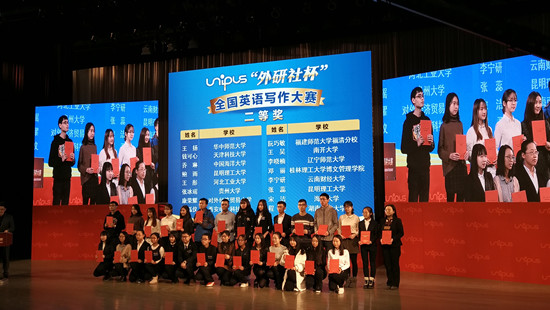 12月4日至8日,2017年“外研社杯”全国英语演讲写作阅读总决赛在北京举行。昆明理工大学在演讲和写作两项大赛中获得好成绩。由李桂丽老师指导的建筑与规划学院的李宇翔取得演讲大赛国家三等奖,梁庆峰老师指导的材料院的张蕊和冶金与能源学院的鲍雨两位研究生分获写作大赛国家二等奖。