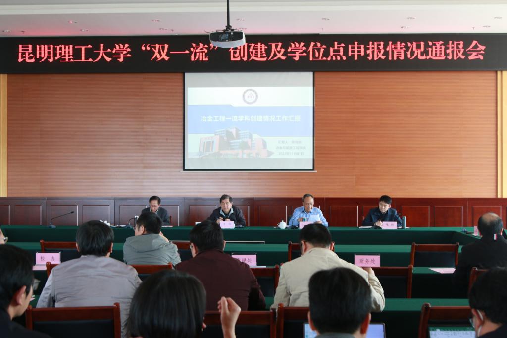 会上,发展规划处负责人做了“双一流”创建及学科建设工作整体推进情况汇报,冶金工程、生科学2个学科做了“一流学科”创建进展汇报,2023年拟申请新增博士学位授权点做了建设情况汇报。参会校领导分别对各学科的发展提出指导意见。