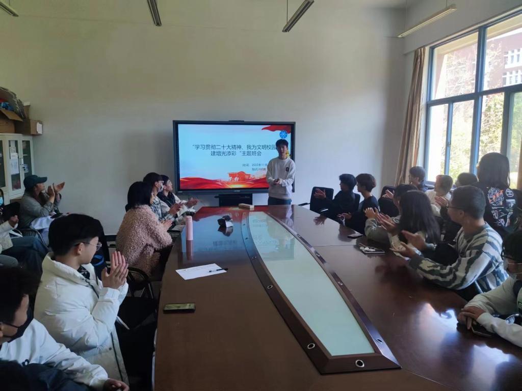 主题班会是开展德育教育的主渠道,也是加强学生思想政治教育的有力抓手。此次学生工作部积极探索主题班会形式,动员各学院采取交流式、实践式、模拟式等方式开展班会,结合线上线下,化“被动灌输”为“主动吸收”,融合专业特色,在广大青年学生喜闻乐见的学习形式中强化学习效果,更好地学习和领会党的二十大精神。
