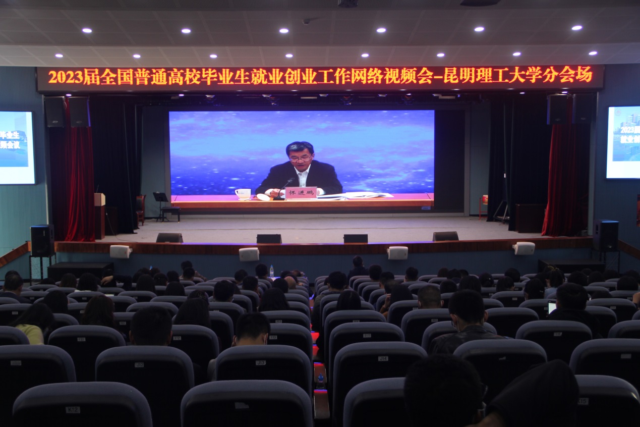 11月15日下午,教育部、人力资源和社会保障部共同召开2023届全国普通高校毕业生就业创业工作网络视频会议,深入学习贯彻党的二十大精神,以习近平新时代中国特色社会主义思想为指导,总结工作,分析形势,全面部署做好2023届高校毕业生就业创业工作。教育部党组书记、部长怀进鹏,人力资源和社会保障部党组成员、副部长俞家栋出席会议,教育部党组成员、副部长翁铁慧主持会议。昆明理工大学党委副书记蔡金红,党委常委、副校长周峰越,学校相关职能部门和学院分管就业工作负责人、就业工作毕业班辅导员等120余人参加会议。