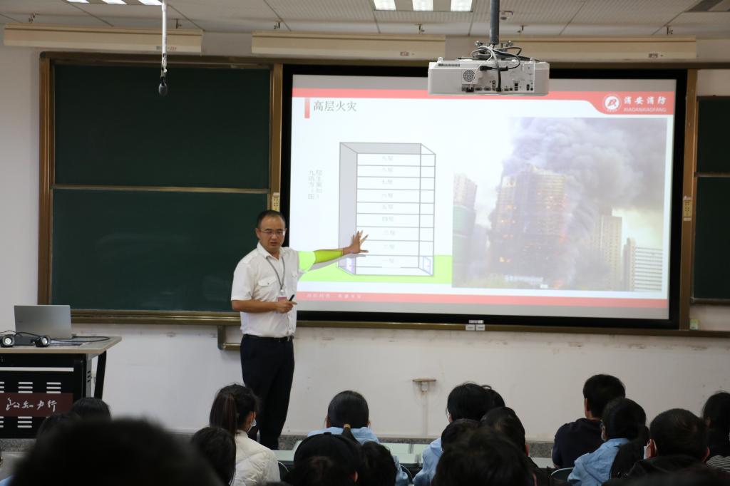 活动分为消防安全知识讲座、消防应急疏散演练和灭火实战演练三个部分。消防安全知识培训在中心区教学楼216教室开展,培训教官以发生在我们周围的火灾案例为切入点,采用图文结合、以案说法的方式,深入浅出地为参训人员讲解消防安全知识。消防安全知识培训结束后,所有参训人员在怡园5幢开展消防应急疏散演练,按照疏散逃生要求,紧张、有序地沿着楼梯撤离到楼下指定区域。灭火实战演练在恬园进行,培训教官给师生们示范灭火器使用方法,随后师生亲自体验了灭火过程。
