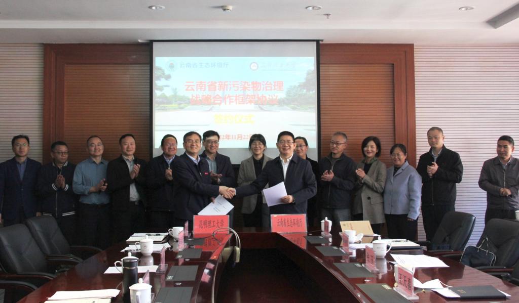 11月22日,昆明理工大学与云南省生态环境厅《云南省新污染物治理战略合作框架协议》签约仪式在学校呈贡校区办公大楼举行。云南省生态环境厅党组成员、副厅长王天喜,昆明理工大学党委常委、副校长潘学军,副校长潘波出席签约仪式。学校副校级领导吴涛主持仪式。