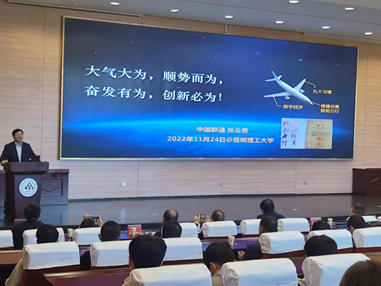 11月24日下午,中国联通云南省分公司党委书记、总经理张云勇到昆明理工大学为信息工程与自动化学院师生作题为《大气大为,顺势而为,奋发有为,创新必为》的专题讲座。