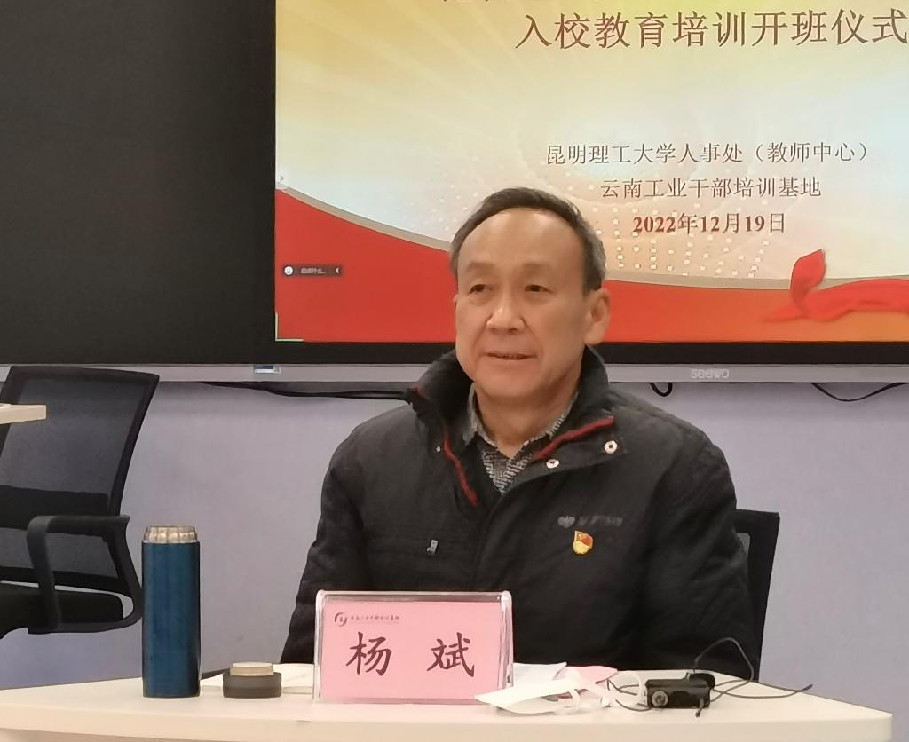 12月19日上午,由昆明理工大学人事处主办,云南工业干部培训基地承办的昆明理工大学2022年新入职教师入校教育培训开班式在呈贡校区举行。本期培训是学校人事处连续四年委托干训基地开展新入职教师培训。昆明理工大学党委常委、副校长杨斌出席开班仪式并作动员讲话。人事处、教师发展中心、云南工业干部培训基地等部门负责人及2022年新入职的265名教师参加此次开班仪式。