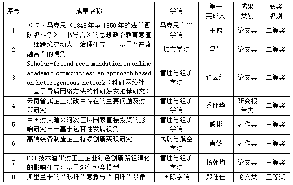 日前,中共云南省委、云南省人民政府发布了《关于表彰奖励云南省社会科学奖获奖项目的决定》,昆明理工大学8项成果荣获云南省社会科学奖,其中二等奖4项,三等奖4项。