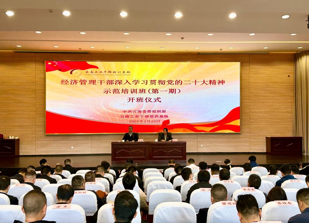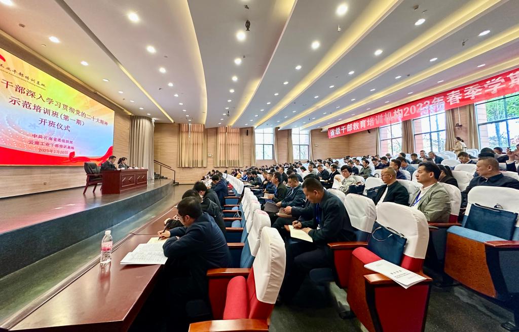 3月20日上午,全省经济管理干部深入学习贯彻党的二十大精神示范培训班(第一期)在云南工业干部培训基地顺利开班。来自全省各县(市、区)发展改革、工业和信息化部门负责同志,共129名干部参加开班学习。