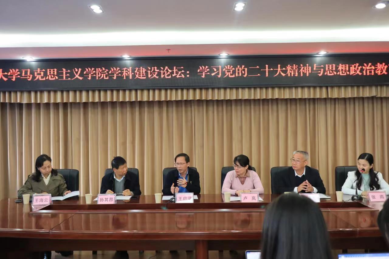 3月21日,昆明理工大学人文社科研究院主办、马克思主义学院承办的马克思主义学院学科建设论坛开讲,河海大学孙其昂教授、上海理工大学卢岚教授应邀到校,围绕“学习党的二十大精神与思想政治教育学科建设”主题作学术讲座。校党委常委、副校长王启梁出席,马克思主义学院相关负责人及全校辅导员代表、马院师生代表参加讲座。