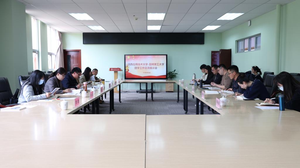 3月29日下午,滇西应用技术大学学生处、校团委负责人等一行6人到昆明理工大学,就团学工作进行交流座谈。校团委工作人员、基层团委书记代表等参加座谈交流。