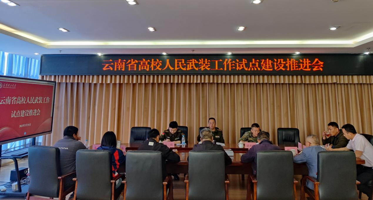3月31日下午,云南省军区动员局在我校组织召开高校人民武装工作试点建设推进会。会议由云南省军区大校副局长李宁明主持。校党委副书记蔡金红出席,省军区动员局相关人员,昆明学院、云南经济管理学院、昆明理工大学武装部相关人员参加推进会。