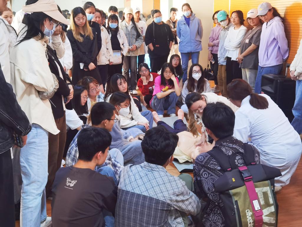 本次培训邀请到云南省第一人民医院裴文彬、张晶两位专家作主讲嘉宾,重点讲解了心肺复苏适用情况及操作流程,并利用模型现场对心肺复苏的实际操作做了演示;介绍了救助窒息病人的方法——海姆立克急救法,并讲述针对不同年龄段群体的操作要点。参与培训的师生们认真聆听讲座内容并亲自实践。
