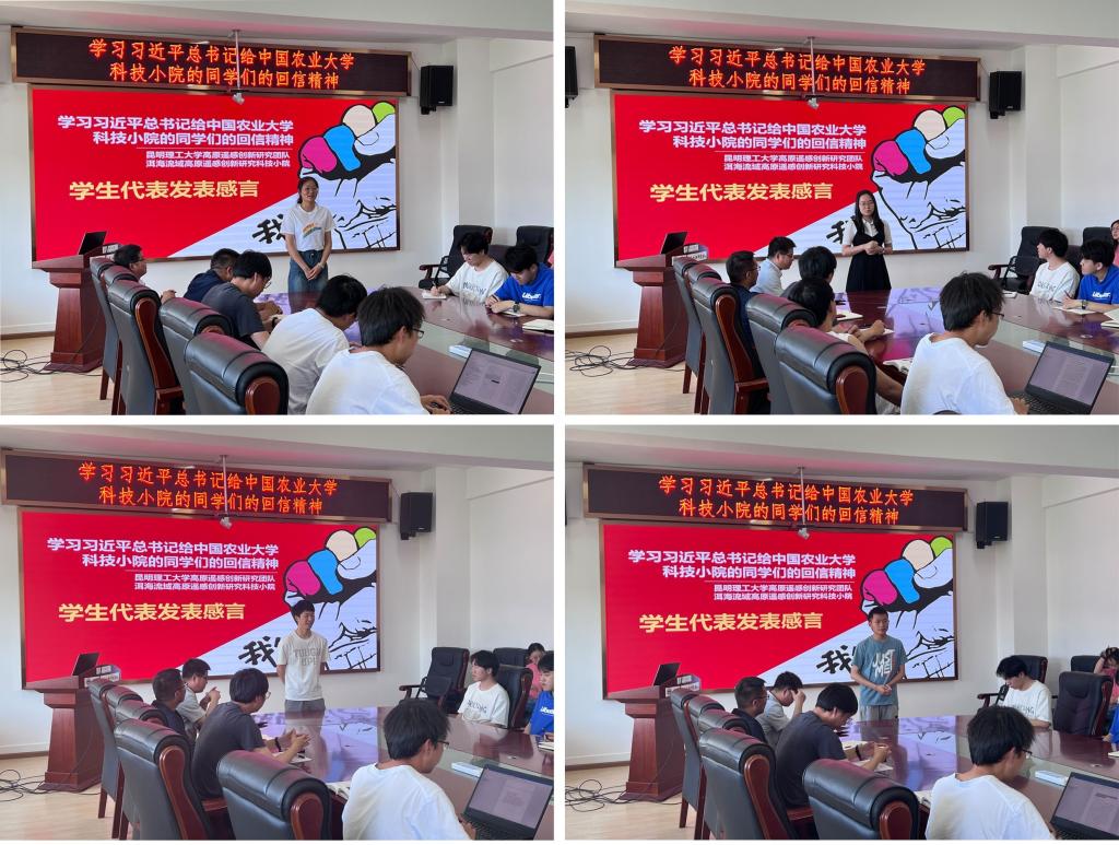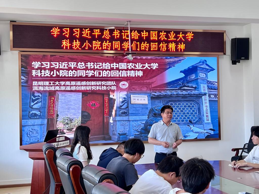 5月7日,洱海流域高原遥感创新研究科技小院师生在昆明理工大学莲华校区主楼811会议室,开展了以学习习近平总书记给中国农业大学科技小院的同学们的回信精神为主题的学习领悟和交流分享活动。