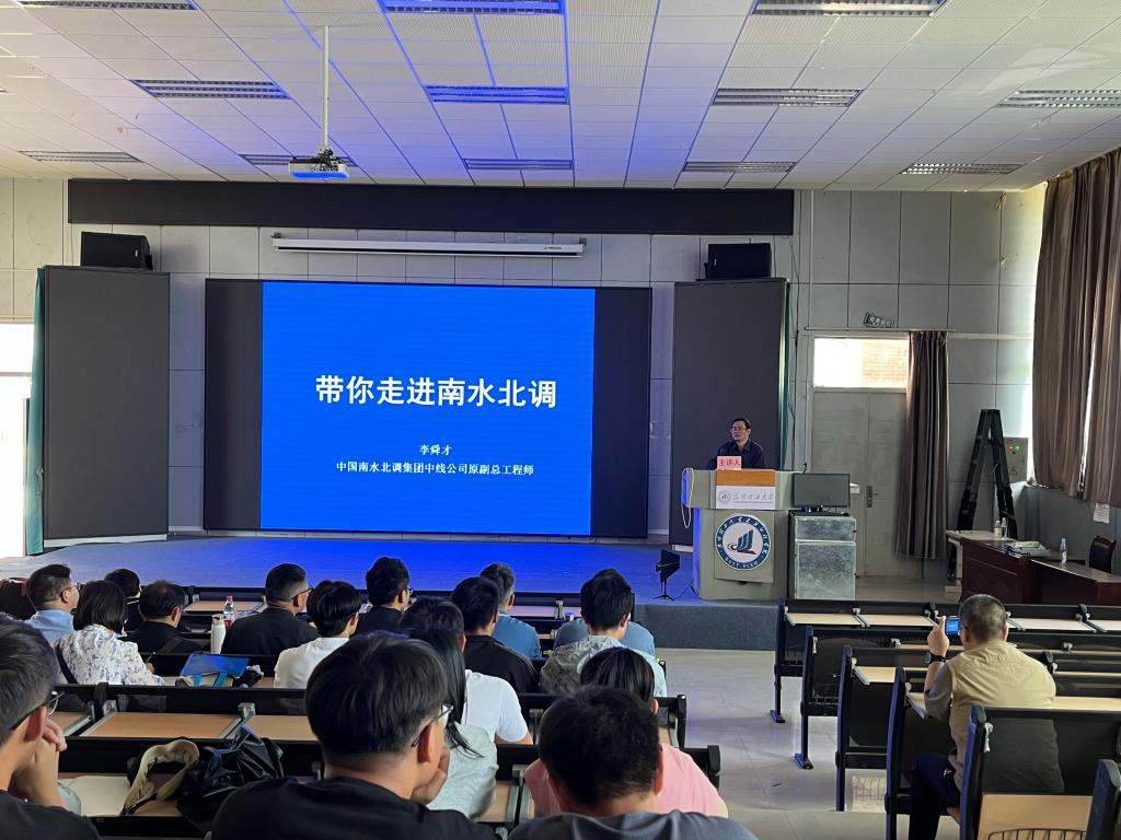 李舜才结合自己担任南水北调中线建管局副总工程师的经历,以丰富、翔实的数字、图片,从南水北调工程的必要性和总体规划谈起,客观分析了我国水资源分布特点,介绍东、中、西三线工程路线和调水规模,系统介绍南水北调工程建设情况,包括各线建设计划期限、管理体制、调水工程体系等。他表示,南水北调中线工程路线长、体量大、辐射广、难度高、时间紧、突发问题多,在工程建设中工程师展现了非凡的智慧与坚持,小到对建筑材料特点的考量,大到统筹总体输水工程渠道设计,无一不体现着新时代工程师们致力攻克核心问题,发展关键技术的决心与坚毅,以及精益求精、勇于创新的奋斗姿态与风貌,生动体现着“执着专注、精益求精、一丝不苟、追求卓越”的工匠精神。