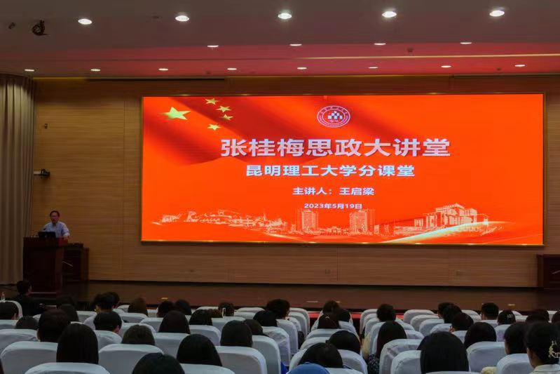 为深入推进学习贯彻习近平新时代中国特色社会主义思想主题教育走深走实,5月19日下午,昆明理工大学张桂梅思政大讲堂-昆明理工大学分课堂第三讲开讲,学校党委常委、副校长王启梁教授以《中国共产党调查研究的传统与经验》为题,为师生代表做报告。