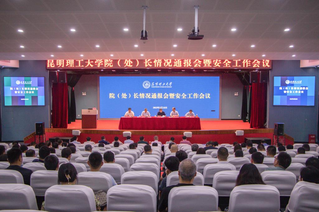 5月22日下午,学校在呈贡校区公教楼小剧场召开院(处)长情况通报会暨安全工作会议。校党委副书记、校长王华,校党委常委、副校长周峰越、杨斌、王启梁,副校长潘波出席会议。杨斌主持会议。