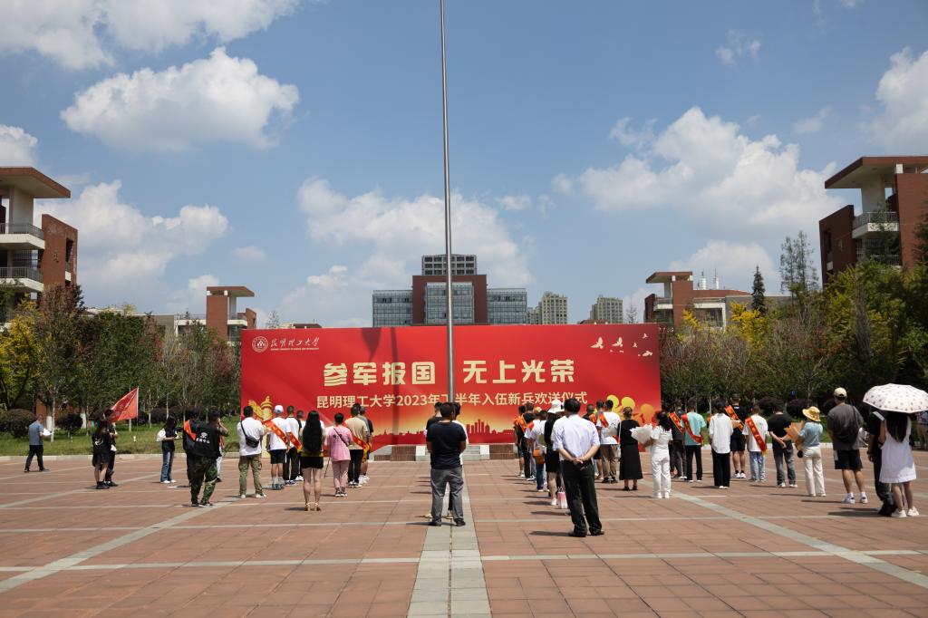 9月6日下午,昆明理工大学2023年下半年入伍新兵欢送仪式在呈贡校区国旗台广场举行,校党委副书记蔡金红,校党委常委、副校长刘殿文出席欢送仪式。