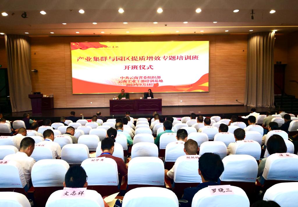9月18日上午,全省“产业集群与园区提质增效专题培训班”在昆明理工大学云南工业干部培训基地开班。干训基地负责人出席开班式并作动员讲话。全省89个园区分管负责同志参加培训。
