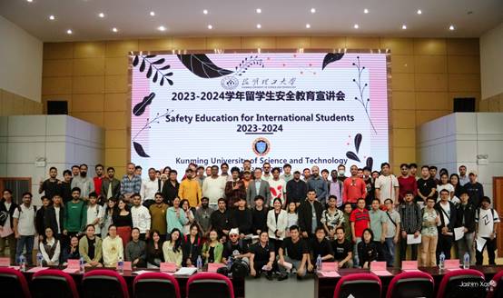 9月21日下午,为进一步提高学校留学生的安全意识,营造安全和谐的学习环境,国际学院邀请昆明市公安局出入境管理局、辖区派出所,学校安全保卫处、学生社区教育管理中心等部门负责人,为全校来自老挝、泰国、巴基斯坦、孟加拉、西班牙等国家的300余名留学生举行2023-2024学年安全教育宣讲会。易健宏副校长出席活动。