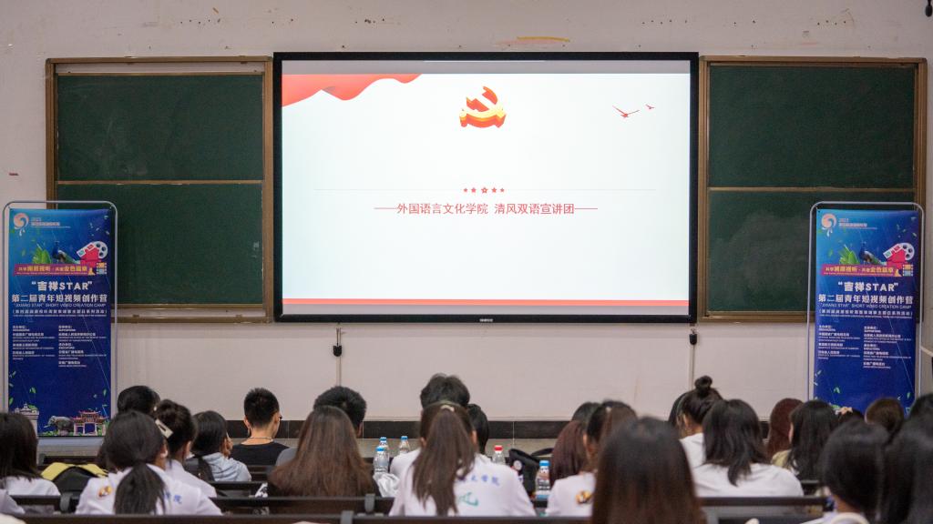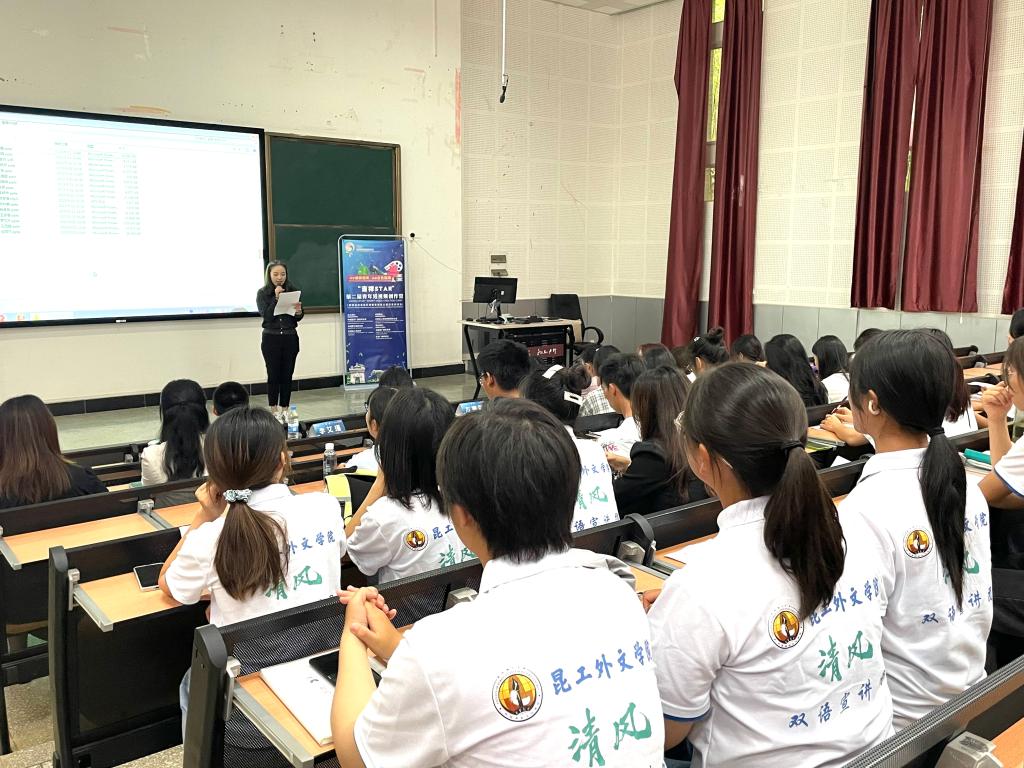 为进一步培养学生爱国主义情怀与文化自信,打造“根深中华,融通国际”的校园氛围,提高学生的沟通能力和表达能力,9月21日下午,由云南省广播电视局、云南广播电视台承办的“吉祥STAR”第二届青年短视频创作营活动走进昆明理工大学。外国语言文化学院在主播征集、培训选拔等环节为活动提供支持,推选共计47名英语专业本科生参加海选活动。