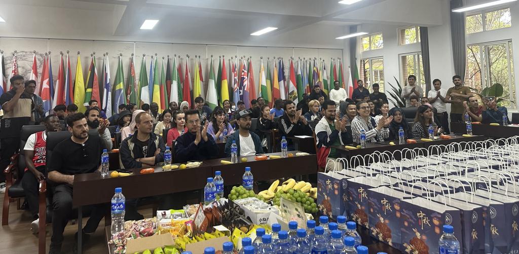 9月27日,国际学院举办中外师生中秋节联谊会,来自老挝、泰国、柬埔寨、巴基斯坦、孟加拉国、赞比亚等国家的100余名来华留学生参加了联谊会。