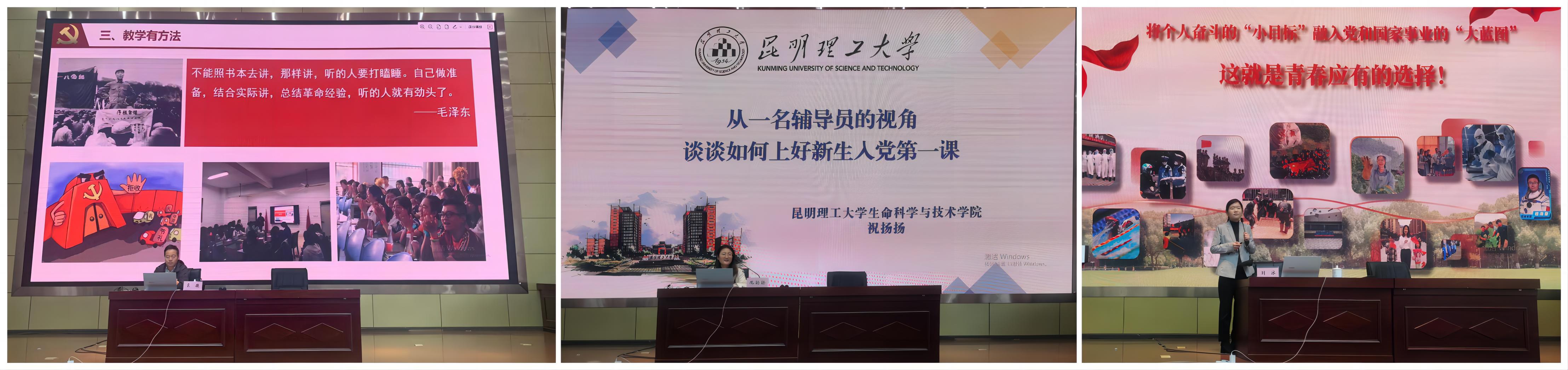 专题辅导结束后,来自化学工程学院分党校的袁敬老师、生命科学与技术学院分党校的祝扬扬老师分别以《认真上好每一堂课》《如何上好新生入党第一课》为题,分享了讲授党课的经验和体会。来自信息工程与自动化学院分党校、刚刚获得云南省首届高校党务工作队伍素质能力展示活动二等奖的刘冰老师,作了题为《青春的选择题》微党课教学展示。