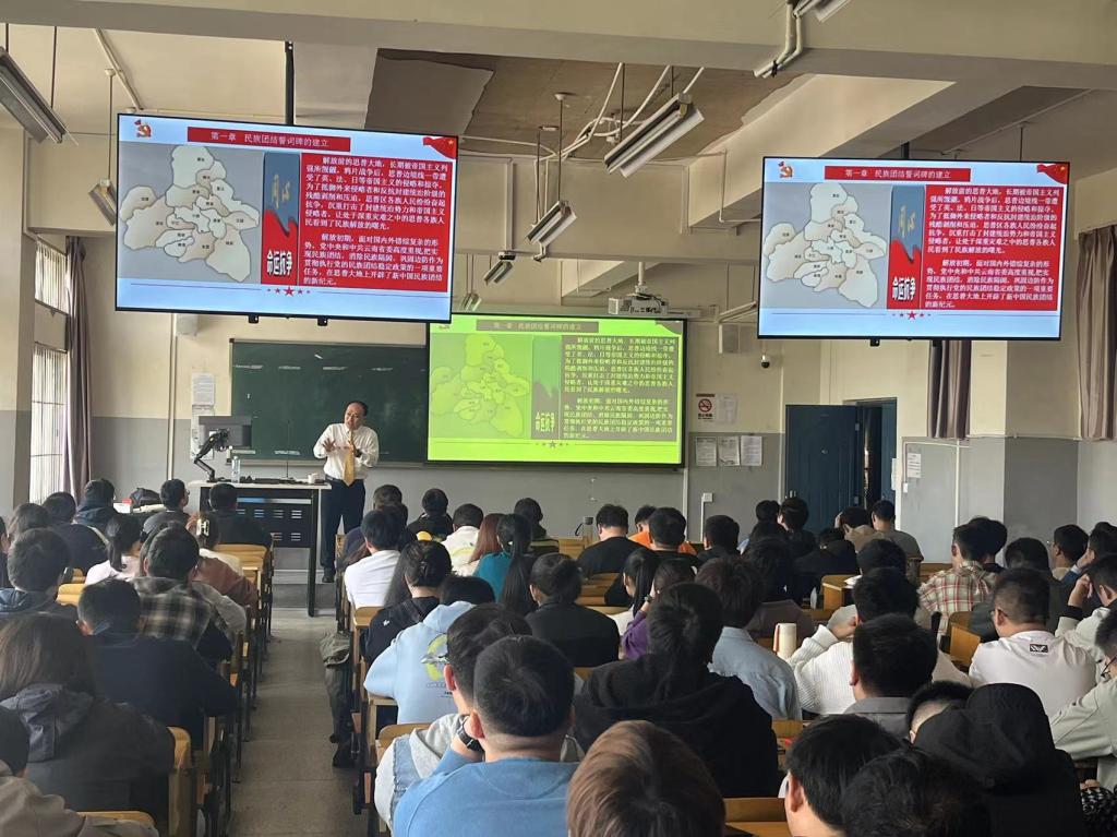 本次讲座面向2023级学术博士生班《中国马克思主义与当代》课程的教学内容需要,围绕“加强民族大团结,铸牢中华民族共同体”主题,从“民族团结誓词碑的建立”“坚贞志士保卫边疆,用生命捍卫誓言”“民族团结共铸辉煌”“习近平新时代中国特色社会主义思想的引领”四个方面,详尽地介绍了新中国成立以来云南各族人民听党话、跟党走,像石榴籽一样自觉团结在一起,在中国共产党领导下实现日新月异发展的生动、感人历程,理论联系实际地阐释了“民族团结是全国人民的幸福”“团结就是力量”的深刻意蕴及时代意义。多年来,云南认真贯彻落实习近平总书记关于加强和改进民族工作的重要思想以及两次考察云南重要讲话精神,牢牢守好民族团结这条“生命线”,以铸牢中华民族共同体意识为主线,集全省之智、举全省之力扎实推进民族团结进步示范区建设,各民族共同团结奋斗、共同繁荣发展,绘就了现代化建设和共同富裕的最美画卷。