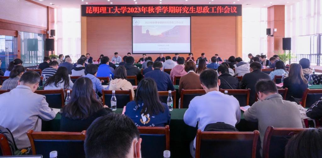10月17日上午,昆明理工大学2023年秋季学期研究生思政工作会议在呈贡校区办公大楼15楼会议室召开。校党委副书记蔡金红出席会议并讲话。宣传部、统战部、研究生院、研工部、保卫处、校团委、就业指导中心、学生社区教育管理中心负责人,各学院研究生思政工作分管领导、研究生辅导员,研究生工作部工作人员,共计100余人参加会议。