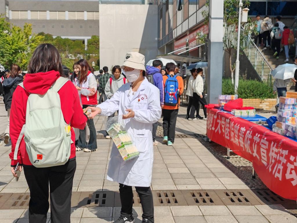 在怡园食堂小广场前,学校医务人员和学生红十字会的同学们向师生们发放宣传资料,讲解吸烟的危害、禁毒防艾知识和法律法规知识,呼吁广大师生养成科学健康的生活方式,学会如何拒绝烟草,抵制毒品,提高自我防护的意识,建立健康的生活理念,掌握预防艾滋病的知识和相关生活技能。通过宣传活动,向大学生传递了“珍爱生命、健康生活”的理念,提高了师生对控烟、禁毒防艾的重视与防范能力。