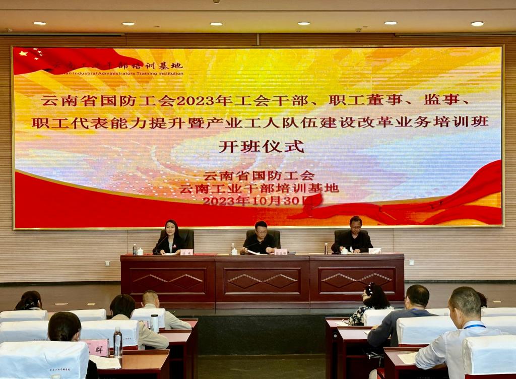 10月30日,由云南省国防工会主办,云南工业干部培训基地负责承办的“云南省国防工会2023年工会干部、职工董事、监事、职工代表能力提升暨产业工人队伍建设改革业务培训班”在昆明理工大学呈贡校区开班。云南省国防工会、云南工业干部培训基地负责人出席开班式并讲话。云南省国防工会系统各单位工会干部、职工董事、监事、职工代表,共计59人参训。