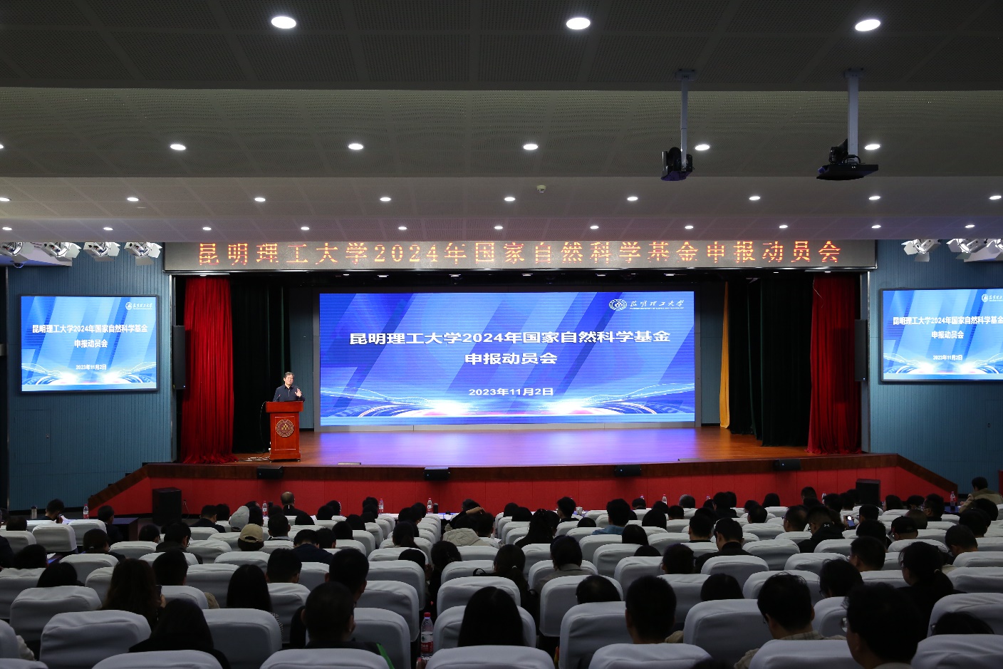11月2日上午,昆明理工大学召开2024年国家自然科学基金申报动员会。会议在呈贡校区小剧场设主会场,分会场设在莲华校区图书馆二楼报告厅。校党委副书记、校长王华,校党委常委、副校长潘学军出席会议,有关职能部门、学院负责人、平台团队负责人、科研秘书和教师代表1000余人通过线上和线下参会。