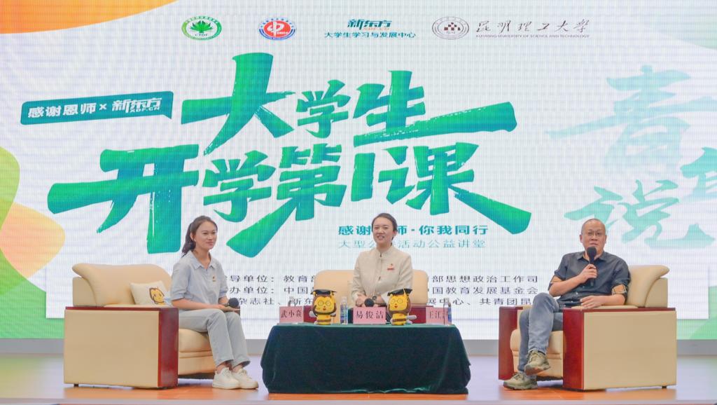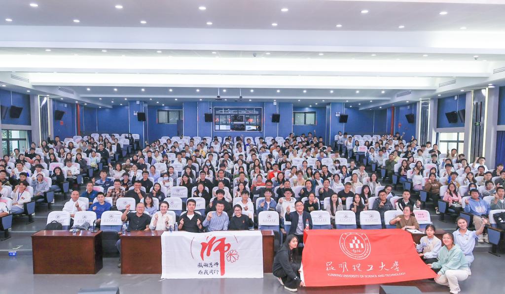 “感谢恩师·你我同行”大型公益讲堂由教育部教师工作司、教育部思想政治工作司指导,中国教师发展基金会、中国教育发展基金会主办,教学考试杂志社、新东方大学生学习与发展中心和共青团昆明理工大学委员会共同承办,中国教师发展基金会感谢恩师项目负责人、新东方大学生学习与发展中心云南中心负责人、新东方大学生学习与发展中心负责人和校团委全体工作人员、各基层团委书记(负责人)、校级学生组织团学骨干、学校“青马工程”第十三期菁英班学员、各学院团支书及青卓班学员代表等350余人参加活动。