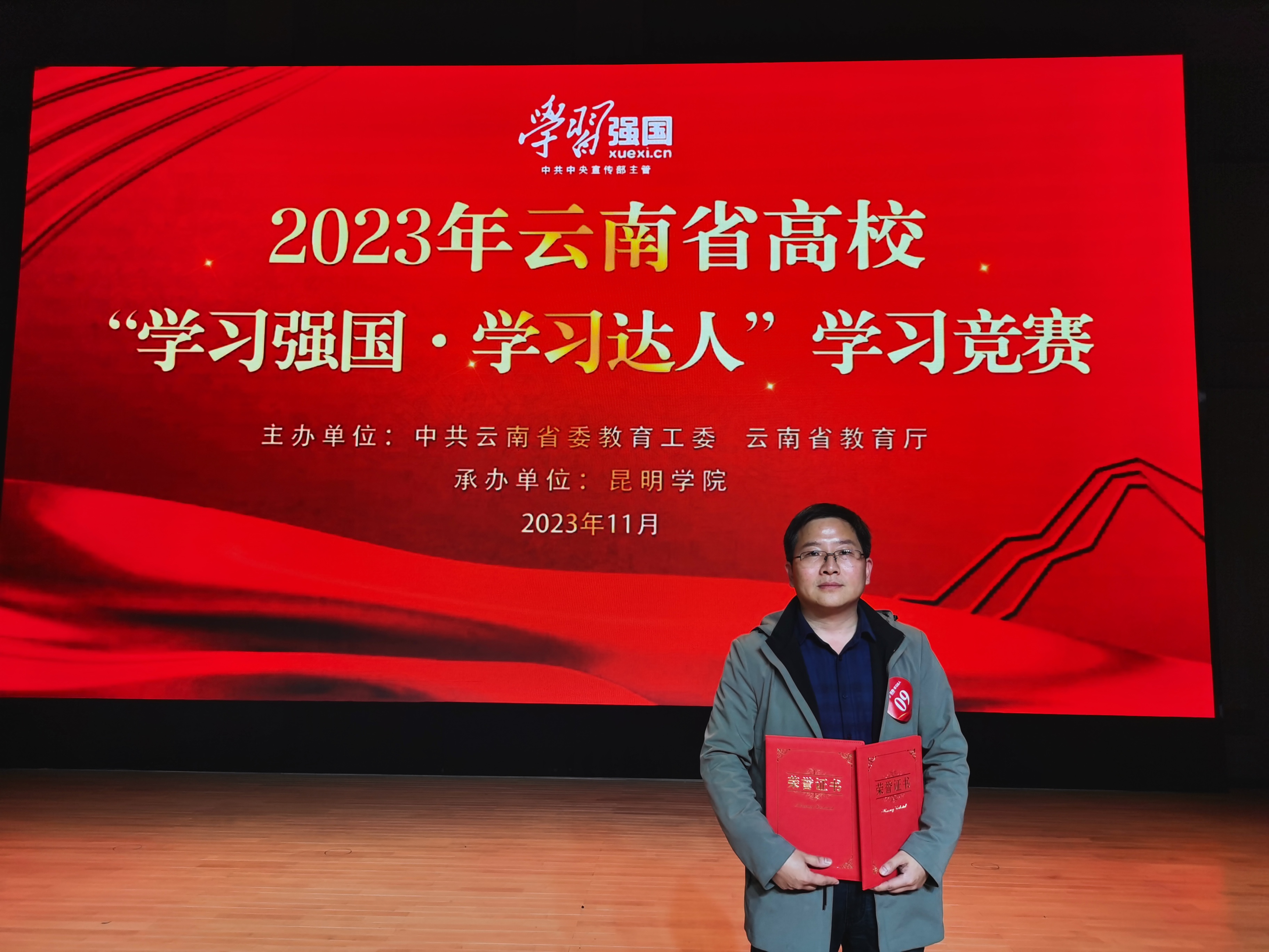 日前,2023年云南省高校“学习强国·学习达人”学习竞赛决赛在昆明举办,经过激烈角逐,昆明理工大学城市学院教师高增稳获学习竞赛二等奖,并以年度学习积分排位全省教育系统第一名的成绩荣获年度积分达人奖。