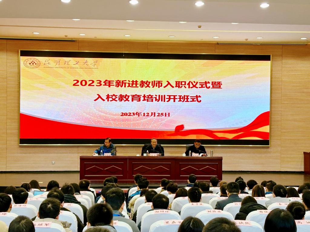 12月25日,由人事处主办,教师中心和云南工业干部培训基地承办的2023年昆明理工大学新入职教师培训班在呈贡校区图书馆一楼云南工业干部培训基地教学点101报告厅举行开班仪式,校党委常委、副校长杨斌出席开班仪式并讲话,人事处、教师中心、云南工业干部培训基地相关负责人及新入职的227名教师参加开班仪式。