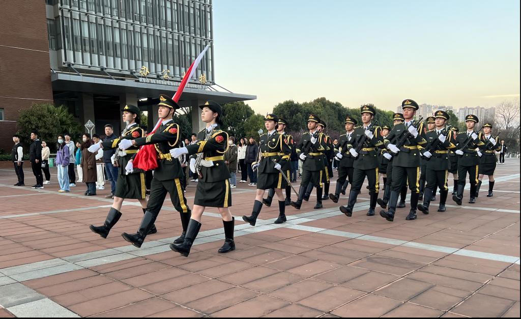 国旗仪仗队精神抖擞、昂首挺胸、步履铿锵,以最庄严的姿态护卫国旗。参加仪式的全体师生以饱满的热情、崭新的精神面貌,齐聚五星红旗之下,共同迎接2024年新学期的开始。