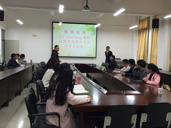 报告结束后,郑大昭教授与昆明理工大学理学院、数据科学研究中心相关负责人座谈交流。理学院和数据科学研究中心的负责人对郑大昭教授到校访问并作学术报告表示感谢,希望通过此次交流促进昆明理工大学理学院、数据科学研究中心与香港理工大学商学院的交流合作。郑大昭教授对理学院、数据科学研究中心近年来在管理科学领域中所取得的成绩表示赞赏,并鼓励教师和研究生积极前往香港理工大学商学院进行访问交流和深造。
