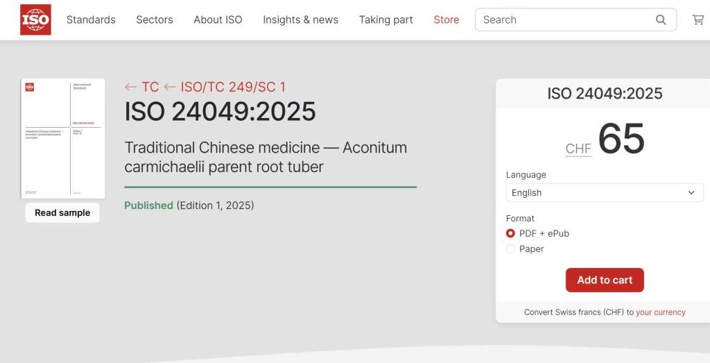 川乌作为中医临床常用药材,其安全性、有效性及质量可控性一直是国际关注的重点。本次发布的ISO国际标准围绕川乌的基原、性状、检测指标及包装存储等环节提出科学规范,将为全球范围内川乌的贸易、研发与应用提供统一技术依据,推动中医药高质量走向世界。