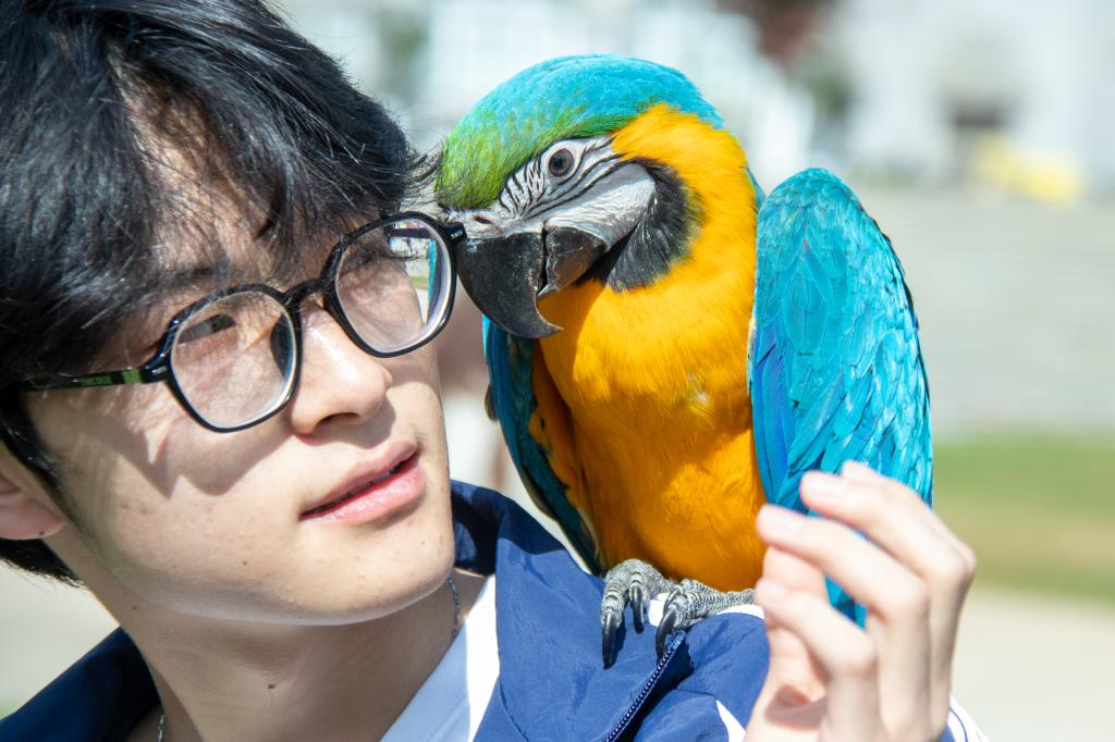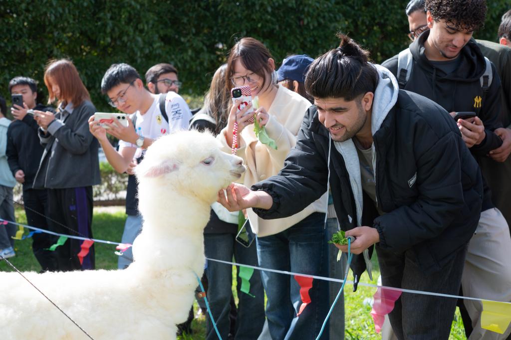 活动现场设置了多个互动区域,各种各样的动物吸引了大量师生驻足。同学们在工作人员与志愿者的引导下,文明、有序地与动物进行互动,现场气氛温馨融洽。