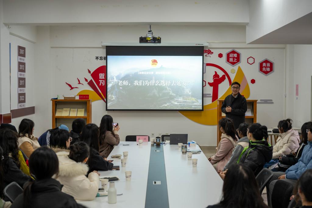 綦玥以生动的故事和工作案例展开宣讲,回溯延安往事,通过一代爱国青年“到延安去、找共产党”的热血故事,深刻阐释“坚持党的领导是青年选择正确方向的根本保证”;分享寻访老兵夏禹生、陈中的感人历程,以老兵“听党话、跟党走”的殷切嘱托,传递信仰的力量与奋斗的初心;结合自身带领学生参与延安乡村振兴的实践经历,讲述青年学子“聚村头、坐炕头,走千家、进万户”的实干故事,展现专业知识服务社会的实践价值。
