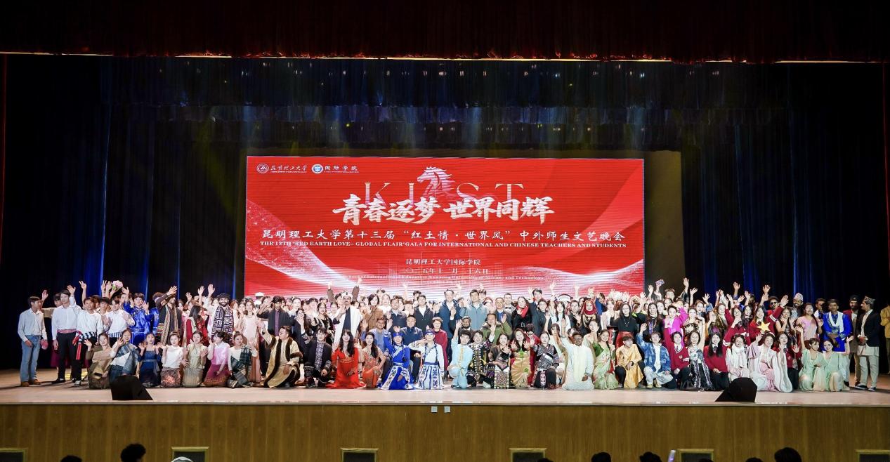 12月26日晚,昆明理工大学呈贡校区红土会堂灯火璀璨、欢声盈耳,以“青春逐梦,世界同辉”为主题的第十三届“红土情·世界风”中外师生文艺晚会在此举行。来自巴基斯坦、老挝、泰国、越南、孟加拉国、尼泊尔、蒙古等43个国家的留学生与学校师生同台演绎、共聚一堂,生动展现了文明交流互鉴的蓬勃生机,彰显了新时代中国高校推动构建人类命运共同体的积极作为。校党政领导陈华仙、蒋业华、刘殿文,相关职能部门负责人出席活动。