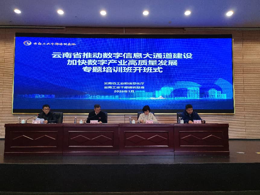 1月12日上午,由云南省工业和信息化厅主办、云南工业干部培训基地承办的云南省推动数字信息大通道建设加快数字产业高质量发展专题培训班在昆明理工大学呈贡校区开班。云南省工信厅副厅长陇玉,昆明理工大学党委常委、副校长潘学军出席开班式。