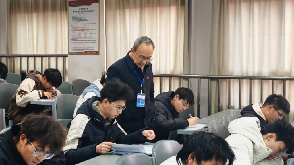 1月5日,昆明理工大学2025-2026学年秋季学期本科生期末考试拉开序幕。校领导对教育教学质量与学风建设高度重视,党委副书记、校长杨斌和党委副书记蔡金红先后到呈贡校区考试现场进行全面细致的巡视检查与指导,深入考务办公室、楼层办公室及考场,检查考务组织、学生作答和监考履职情况,并与主考教师详细交流试卷命题、批阅安排等情况。