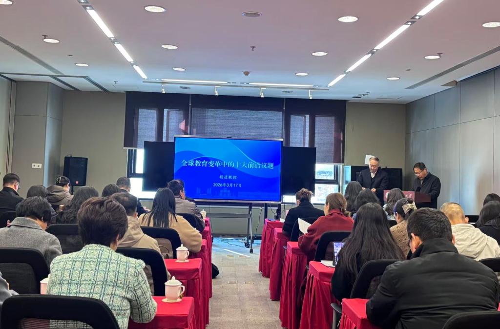 3月17日上午,受云南省教育厅委托,学校邀请中国常驻联合国教科文组织原大使衔代表、中国驻法国大使馆教育处原公使衔参赞、联合国教科文组织终身学习研究所理事会成员杨进教授到校开展题为“全球教育变革中的十大前沿问题”的讲座。昆明理工大学党委常委、副校长蒋业华,云南省教育厅相关负责人及在昆15所高校40余名外事管理干部参加讲座。