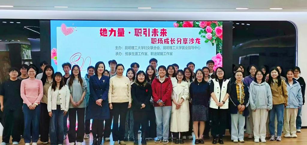 3月26日,由校妇联、就业指导中心主办,悦享生涯工作室与职途赋能工作室承办的“她力量·职引未来”女大学生职场成长分享沙龙在昆明理工大学呈贡校区举行。