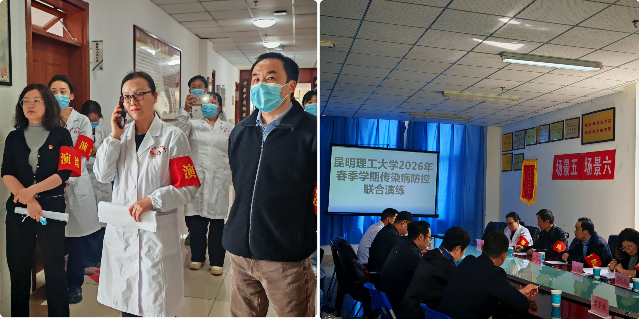 为进一步规范校园传染病应急处置流程,提升各部门联防联控、快速反应和高效处置能力,切实保障全校师生身体健康和校园安全稳定,3月30日,昆明理工大学在校医院、学生宿舍和食堂开展了2026年春季传染病防控联合演练。本次演练活动由牛昱宇副校长担任总指挥,由校医院牵头,直属部门党委、学生工作处、保卫处、后勤保障服务中心、学生社区教育中心等部门负责人、工作人员及校医院全体医护人员参加演练,云南疾控中心和呈贡区疾控中心专家到场指导。
