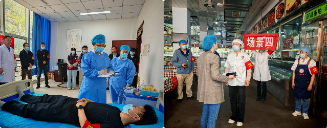 演练现场,宿管人员发现学生可疑情况后,第一时间上报校医院,严格落实隔离、通风等临时防控措施;校医院值班医生迅速抵达现场,通过查体、询问病史初步判断疑似传染病感染,并按流程上报感控办及学校领导,申请启动应急预案;学生社区、保卫处工作人员快速设置警戒区,疏散人员;专业人员规范穿戴防护用品,按照操作标准处置呕吐物,避免传染源扩散;患病学生被转运至校医院隔离观察室,医护人员对其进行对症治疗,并采集标本送检,落实闭环管理;后勤保障服务中心开展食品留样查验、食品安全隐患排查,开展流调溯源工作;待疫情得到有效控制后,校医院向疾控中心申请解除管控,有序复课复工,确保校园恢复常态化管理。