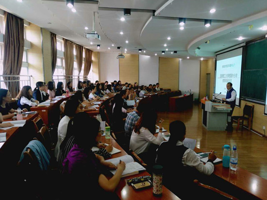 开班仪式后,周峰越副校长进行了“教育的终极目标是什么?”的专题讲座。讲座围绕教育发展的历史,简述了西方教育根源和现代的教育体系,提出学生是学校的服务对象,教育的终极目标是为了学生的终身幸福。周校长同时还希望教师们以快乐幸福的状态投入附中附小的教育工作中,探索真理、传播思想和启迪智慧,把我校附属中小学建成质量一流、口碑良好的学校。