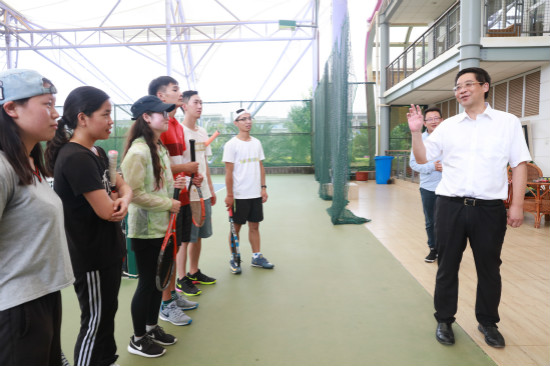 彭校长一行还走访了怡园社区学生宿舍,看望了暑期留校的学生,详细了解留校原因,并亲切询问了下学期开课情况;本月25日,昆明理工大学承办的全国大学生网球比赛将在呈贡举行,彭校长一行亲临一号网球场,勉励积极备战的运动员和教练员发扬昆工精神、发挥主场优势,打好每一场比赛。